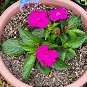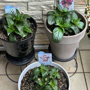 サンパティオ植え付けました𓂃𓂂ꕤ*.゚ どう植えるか悩みましたが、とりあえずパープルとブラッシュピンクを同じ鉢に。 いずれ地植え予定のホワイトは単鉢に。 でも、すごくしっかりした葉っぱで幅30センチとなると、この鉢ではキツそう💦 いずれ鉢変えるかもしれないけど、とりあえず植え付けました。 すごくしっかりとした株で、脇からもたくさん芽が出て、蕾もいろんなところに沢山あります。 これはしっかり育ってくれそうです! 最初付いてた花は配送で取れてしまい、1つだけ咲いてた花も今はないけど、蕾がしっかりあるし、葉っぱもイキイキとしているので、これからが楽しみです*°♡
