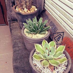 シブい三連星(*´Д`*) 手前から、アガベ「吉祥冠錦」「笹の雪」 カラルマ「黒竜角」