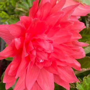 球根ベゴニア ベレコニア ローズ💗 寄せ植えの中で、八重咲きの花が目立っています‼️ 庭の入口の屋根の下で、たくさん咲いてきました❣️
