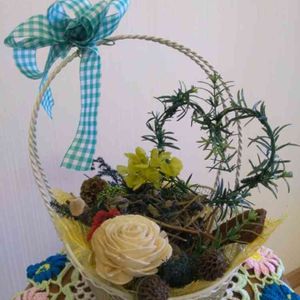 *花籠* ドライフラワーで花籠を作りました。 折から雨が降り始めました。 アジサイが喜んでいるかな? 雨雨と