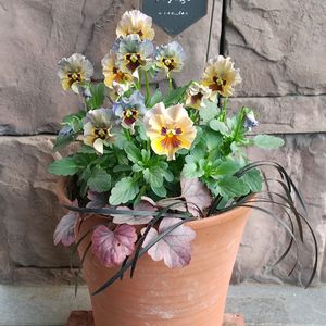 ヌーヴェルヴァーグの寄せ植えの今日の様子 寒さに少し痛み気味かな🙄 うちの方は朝方とか結構冷えるから真冬の間は仕方ないな🥶 でも朝の気温-2、-3℃だからまだまだ今年は暖かいほう これからもっと冷える朝があるはず❄️がんばれ!