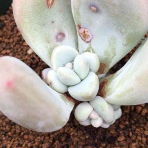 親株が重くていびつになってきたのでカットしたらもうチビちゃんが出てきました😋 安定の月美人です。