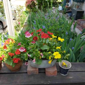 うわぁ〜ミムラスの花付きがとても良く 可愛くなっちゃった💗 これはこれでいいかなぁ(o´艸`) チョコミントとルメックスが引き締めてくれて良い感じです🎶 ダイアンサスと奥のアサギリソウ…うーん 頑張れ〜(ง •̀_•́)ง 寄せ植えNO3 🪴 6/2植えてから2週間弱(6/14pic)です ドッシリした素焼きが安定感抜群👍