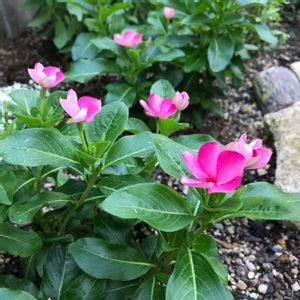 北島園芸さんのニチニチソウ 今シーズン2つ目は びーだまオレンジ🧡 ピンクに限りなく近いオレンジやけど、可愛い♡ ニチニチソウ、お手入れほぼ不要、次々咲くいい子ちゃん☆♡( ˙꒳˙ )♥★ 最近は色んな色や形、大きさの子があって選ぶの楽しい♡