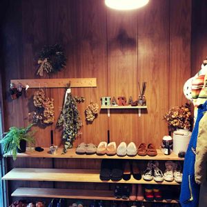 室内壁面。 もう、いろんなものの集い場← 鉢物、切花、水栽培、観葉、多肉、生にドライ。 もう なんでもありよ。
