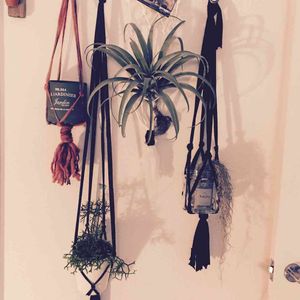 ズパケッティは高いし 100円ショップのTシャツヤーンは売り切れだし… 自家製Tシャツヤーンでプラハン作って 新しく出迎えたリプサリスを入れたらビョ〜〜ンて長なった笑