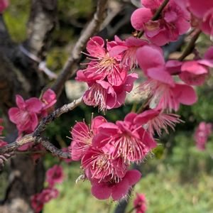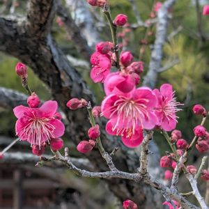 ~🌿カゴシマ コウバイ🌿~ ウメ 花言葉 💖上品 💖忍耐 💖優美 💖艶やか 💖八重咲きで 濃い紅色‥ 🏷️金曜日の蕾たち 🏷️咲き始めのお花たち 🏷️つぼみに魅せられて 🏷️神社 🏷️一期一会のお花♡ 参加しま~す