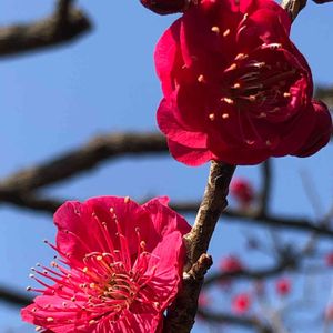 2/21㈰④ 羽根木公園の梅の花⑤ 1番濃い紅色の 《鹿児島 かごしまこう》 去年調べました。カゴシマベニかと思っていたら違いました😅 緋梅性(ひばいしょう)の梅の花です。木の髄も紅いのです。 何故か羽根木公園には 鹿児島紅と、鹿児島がありましたが、同じ花でしたので、名札の間違いのようですね〜😅沢山あるから混乱しますよね〜💦💦