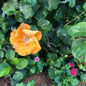 帰り道、巨大ハイビスカス発見🌺😳😳😳 人の顔くらいありました😂 遺伝子組み換えとかなんですかねー?💨 びっくり