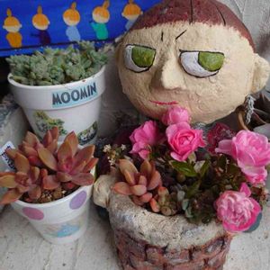 こんばんわ〜😆 今日は、大好きな 🏷ムーミンの日❤ ←よっちゃんにおねだりしたムーミン鉢と →ミィで参加します❤ ミィちゃん 植えるスペース少ないから、多肉がしょぼくやせ細り、朝からミニ薔薇 積んでボリュームアップしました💗💗💗 ミィの顔デカイから AI突破しそうに無いけど、ダメ元で アップしちゃうよ🎶 まだ蓑虫イヤリング してます⊙.☉エッヘッヘ