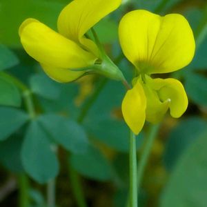 鮮やかな黄色の蝶形花で陽当たりの良い草原に自生しているミヤコグサ