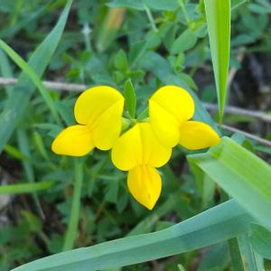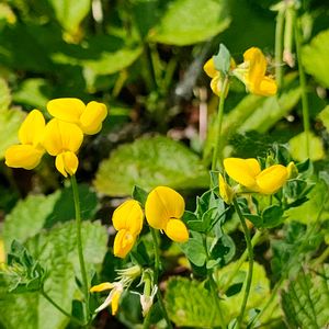 2025.7.17 ミヤコグサです。海水浴場の近くにある松林に生えていました。遠くからでも黄色い花が目立ちます。
