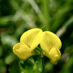 元気パワーの黄色で、ぷっくりとした花姿が、とても可愛らしいですね💛🎶 ミヤコグサ マメ科 ミヤコグサ属 日本全国の海岸や山野などの日当たりの良い場所に自生。 草丈が短く地面を這うように群生。 花は小さく1~1.5cm程度、その形状はひと目でマメ科と分かりますね。 花期が長く、春に咲き始めてから花数を減らしながら初夏まで咲き続けます。 ミヤコグサ(都草)の花は、一つの花茎に1~3輪くらい咲きます。 花後は2cm程度のインゲン豆のような形状の果実を付けます。 果実は真っ黒に熟すと鞘(さや)が弾け、種子が飛び散る仕組みです。 ミヤコグサに良く似た植物でセイヨウミヤコグサがあります。 草丈、花、共にミヤコグサによく似ていますが、セイヨウミヤコグサは葉茎に毛があります。 花の数も、一つの花茎に3~7輪とミヤコグサより多いので見分けが付きます。