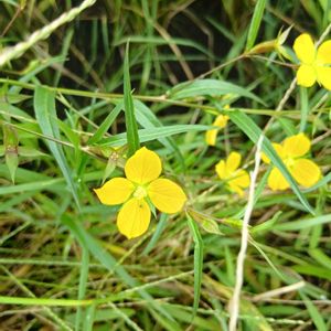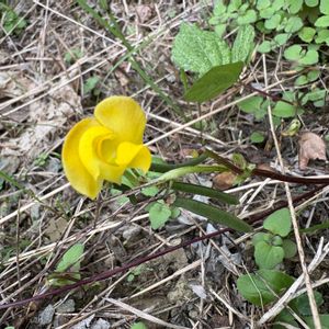 ミヤコグサ(都草) マメ科 ミヤコグサ属 4~10月 長さ15~40cm 這性 在来種 多年草 這って広がり、先で花のつく茎が立ち上がる 高さとしては15cm内外で、混み合ってきたり障害となるものがあれば上に伸びていく感じかな 茎は中実とされる(_が不確実) →(確認のために)切る場所によっては中空だったりすることもあるそうだ 全体に、ふつう、ほぼ、無毛 葉は5小葉からなり、基部の2小葉は托葉状につく 本来の托葉は無いかあっても微小 小葉は長さ5~15㎜の卵形~倒卵形 花は黄色の蝶形花 葉腋から出る花茎の先に1~3(稀に4)個つく 花序につく総苞は3出状で、小葉と同形であるが小さい 萼は5裂し、裂片の長さは萼筒より長いか同長 ふつう軟毛がある 果実(豆果)は円柱状の線形で、熟すと縦2列に裂開し種子を弾き飛ばす 裂開後の果皮はねじれる