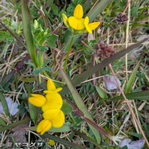 ミヤコグサ(都草) マメ科 ミヤコグサ属 4~10月 長さ5~40cm(這性) 在来種 多年草 1枚目、もしゃもしゃしていて最初何だこれってなった(笑) アオムシ?みたいなものがいるけど何で??🙄