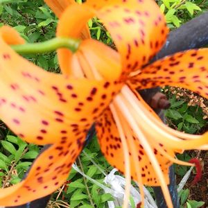 家の庭にオニユリが咲いています♪ たくさん咲くと困るので枝についている黒い種を全部取りました😉 🧡🌿(๑><๑)テヘッ 🧚♀️.。.:*♡✿ฺ