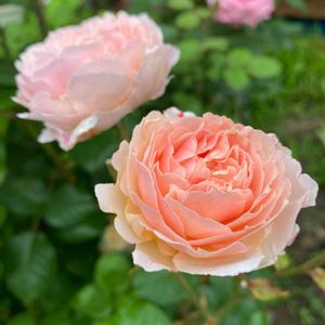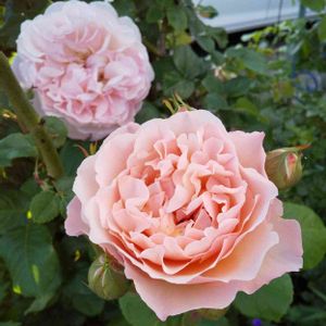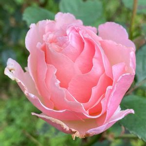薔薇 プリンセス シャルレーヌ ドゥ モナコ です💕オークルを帯びたパステルピンクの花色とフリルがかる花弁の抱え咲き🌹 国際コンクール金賞や芳香賞🥇を受賞したバラでもあります✨✨ 数年前⭐️になる寸前まで状態が悪かった 薔薇でした。無事に回復し❤️🩹綺麗なお花を見せてくれました🥰 この子の生命力に感謝です😌