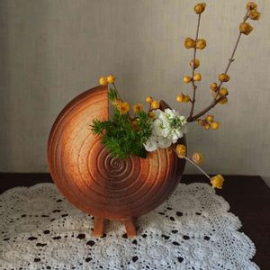 庭の花を生ける✊ 先日益子の陶器市で面白い壁掛けの花器を購入しました。 若い女性の陶芸家の作品で、後ろに引っかける小さな穴が空けてあるだけなんですけど、夫が壁に板を取り付けてくれたので、階段横のこの場所が定位置になりそうです🤭