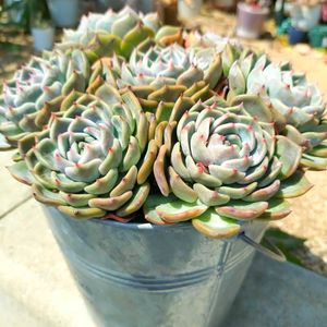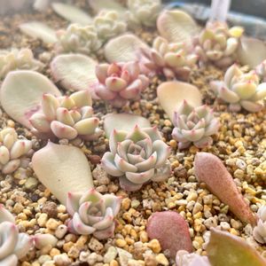 おはようございます😊 今日の天気は曇り☁️ 昨日はお天気が良く多肉日和☀️.° 無人販売の十色多肉さんで可愛い子達を狩って来ました♥️ クィーンオブピーチ コロラータ 白水晶 ブルームーン (リンゼアナ×ブランデティ) ×シムランスラグナサンチェス キャロライン 6つお迎えしました❣️