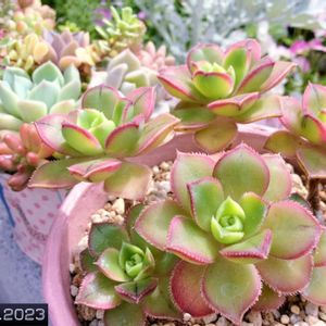 今朝の多肉ちゃん•*¨*•.¸¸♬︎ 赤い縁どりの夕映えさん♡(⑉︎• •⑉︎)♡ᔆᵘᵗᵉᵏⁱ♡