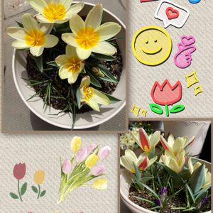 ダブルデッカー植えの チューリップ🌷&クロッカス チューリップは陽があたると花びらがひらきます❣️ これってチューリップ🌷ひらきすぎじゃない😅💦 これではクロッカスが見えない🤣