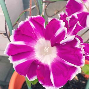朝顔の紫が久しぶりに咲きました🙌🏻 いつもピンクばかり咲いていたので、紫が咲くと嬉しい😊 朝顔もそろそろ終盤に向かってます❣️ タネ取りしなきゃだな😉