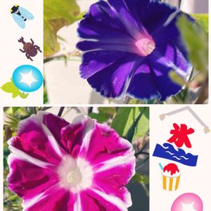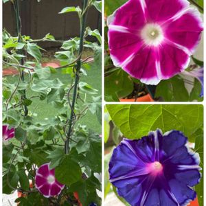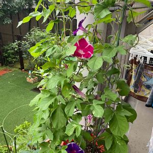 曇り空☁️の横浜⚓️ 風があり、涼しい 2色植え朝顔 紅&紫が今朝咲きました🙌🏻😄 つるがどんどん伸びてしまい…あっという間に支柱にからまり…😅 支柱じゃなくて、ネットにからませれば良かったかなぁ〜と反省😰 小学生以来の朝顔育て💦 お花が咲いて 嬉しい〜💕