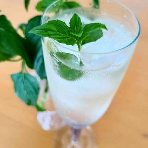 ご近所さんから頂いたモヒートミントでミントソーダを作りました🌿✨ 今日も暑いので、涼しさをお届けします💚🥂🧊🐧