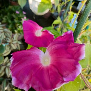 超大輪朝顔 朝顔協会のイベントでいただいた大輪朝顔です。 気温がかなり下がってきましたが、まだまだ咲き続けてます。 そろそろビオラを迎えるための準備を始めようと思うので色々移動中です。