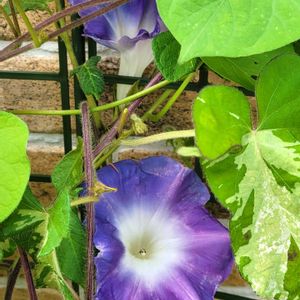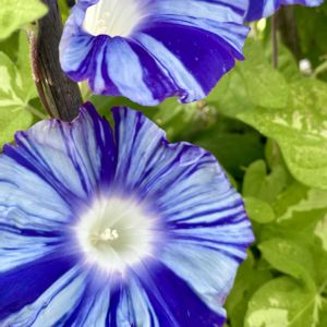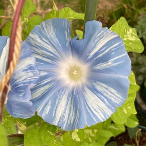 超大輪朝顔 三渓園の朝顔展でもらってきた大輪朝顔が咲きました!市販で売られている品種と比較すると大きさが全然違います。よく見ると茎や葉のサイズも異なることが分かって驚きました。タネが取れればいいなと思いながら育ててます。