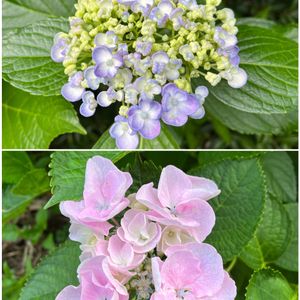 一本の挿木苗からから 二色開花のアジサイ ピンクになるか、ブルーになるか