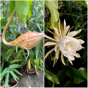 昨日の夕方と晩のようす 昨晩、9時ごろの開花でした 今年はこの一輪のみかも…
