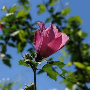 昨日 庭の奥の木槿・ブルーバードが きれいに咲いていました ブルーバードと言いながら ピンクに咲いていました