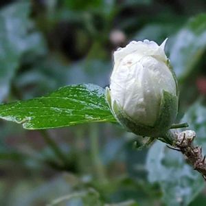 白い八重咲きの木槿です。今晩これからの台風でも明日無事に咲いてくれますように…。 🏷金曜日の蕾たち…にお願い致します。 今日も有り難うございました。どなたにも台風被害が出ませんように…。