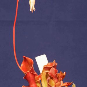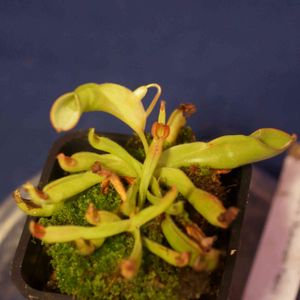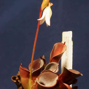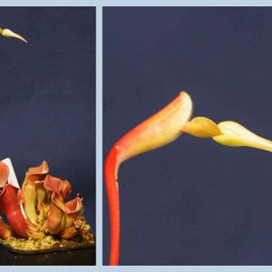 先月投稿したHeliamphora nutans Kukenam Tepuiです。 ヘリアンは発芽から3~5年で親葉が出始め、親株になってから3~5年で花が咲くらしいのですが、やっと親葉が1枚出たと思ったら、いきなり花芽が上がってしまいました。 でもまだ小さい株なので蕾が力を振り絞って顔を出そうとしているようです。