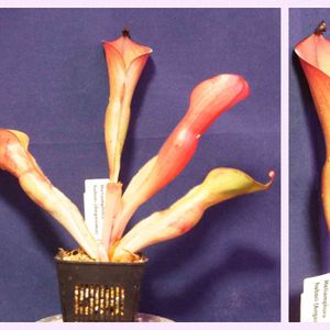 台風接近で外出は諦め、特にすることもなかったので幾つかヘリアンの植替えをしました。 ピッチャーの形が変ですが、これはHeliamphora exappendiculata Amuri Tepuiです。 左が植替え前、右が植替え後、株が殖えてしまいました。 分けた株は根が1本ずつしか付いていないので、2か月ぐらい様子を見た方がいいでしょう。 来月の関西食虫植物集会には間に合いそうにないかナ??