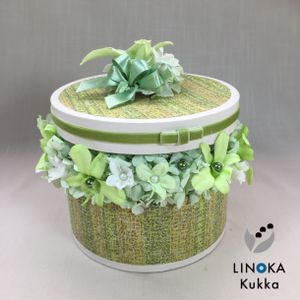 フィンランドのヴィンテージの壁紙で作られたギフトボックスに、プリザーブドのシンビジュームとデンドロビュームをアレンジしてみました。