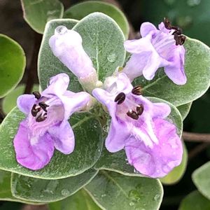 ハマゴウ(浜香、浜栲) 南を代表する海浜植物とあるので、浜にあるのかと思ったら、普通のお家の鉢植えで出会いました。 青紫色の珍しい花です。(私にとって) 🏷水曜日は水色 🏷青い花で納涼祭2022 🏷水滴の水曜日 に参加させていただきます。 シソ科 クマツヅラ属 常緑低木 開花期: 7〜9月 花冠: 1.2〜1.6cm 花言葉: 「愛の喜び」 実: 黄褐色から黒に。 別名: ハマボウ、ハマホウ、ハマカズラハマハイ、ハマシキミ
