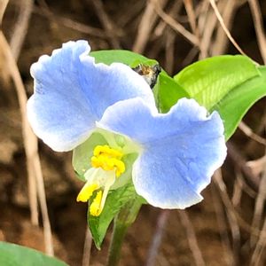 メガネツユクサ👓(眼鏡露草) やっと見つけました! 主がいないと思っていた花壇の法面に一輪だけ。 花弁がヒラヒラした白い縁取りのあるツユクサ。 水色に白い縁取りが涼やか🤍💙💚 別名: フクリンツユクサ(覆輪露草) 🏷水曜日は水色 🏷青い花マニア 🏷青い花で秋祭り2022 に参加させていただきます。 ツユクサ科 ツユクサ属 開花期: 6〜9月 花径: 2cmほど 由来: 白い眼鏡をかけているように見えることから