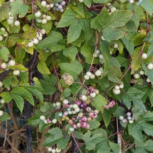銀行の🚙駐車場🅿のフェンスに野ぶどうがたくさん カラスが5羽食べていました💦 食べてる所撮りたかったけど、逃げるよね〜🤗