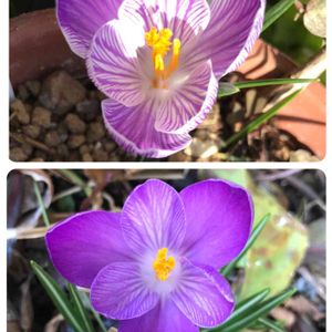 💠今日のお花💠 💜クロッカス💜 おはようございます😃 春を感じる光の朝です。 今年はまだ咲きませんが、過去picの2月の写真です。 黄色のもシンプルで好きですが、紫の絞りにいつも魅せられます💜 マイガーデン💕