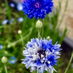 今日のお花*ヤグルマギク 今春の出会いから・:*+. 《スライドpic》 ① ~③🩵💙💜 ブルー系、強し!ᕦ(ò_óˇ)ᕤ♡ ④淡いピンク🩷も可愛い~♡ ⑤多色多彩💖