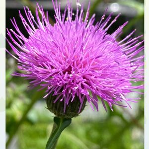おはようございます😊 GSの今日のお花 アザミ キク科 種類も多く、判別も難しいですね😓 スコットランド🏴の国花 大好きなお花の一つです😍 3枚目はアメリカオニアザミ💜 (生態系被害防止外来種) 🏷️青い花で夏祭り2025