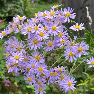 おはようございます😊 シオン キク科 にわか雨の後の庭で、咲き乱れるお花に水滴が可愛いです💕😍 今日の投稿は小さい庭の菊まつりです╰(*´︶`*)╯♡ 今日も元気に穏やかな一日をお過ごしくださいね💖🤗 ジュリアーノ さん発信 🏷️水曜日は水色 🏷️彩月(いろどりづき)の青い花2025 🏷️水滴の水曜日