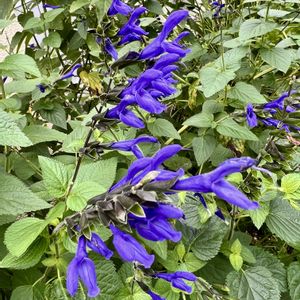 8/23㈯② 🏷おしゃれな土曜日♪ 🏷美しく青きドヨウ 雨上がりの青いサルビアガラニチカ 日本ではメドーセージという流通名もありますが、本当のメドーセージは違う花サルビアプラテンシスのことだそうです🔍️🧐 サルビアはラテン語イタリア語読み、セージは英語読みで同じ花に〇〇サルビアと〇〇セージの呼び名があります😃