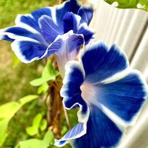 ふたごの朝顔 仲良く並んで咲いてます〜💙🤍 もうそろそろ、 終わりに近づいて来たでしょうか 今年の夏を、きれいなブルーで楽しませてくれました( ˘͈ ᵕ ˘͈ ) 🏷ファンタスティックブルー 参加させていただきます💙
