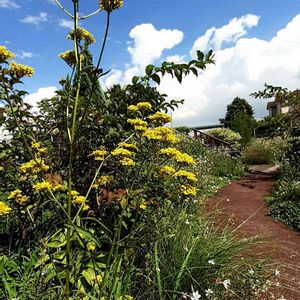 お出かけ先にて 爽やかな 秋晴れ 今日のお花 オミナエシなど