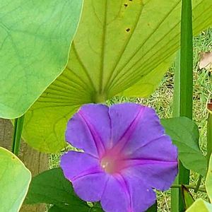 7/24㈯② 🏷美しく青きドヨウ 🏷おしゃれな土曜日♪ 🏷青い夏の花2021 🏷ファンタスティックブルー 🏷青い夏の花マニア 大船フラワーセンターの朝顔 大賀ハスの大きな葉影で涼しむマドモアゼルかマダムかのような朝顔さん💜