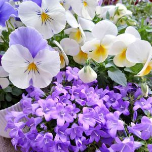 今日のお花「カンパニュラ」🌿💜 ビオラと共に春らしい取り合わせで🤗💕 (今年3月の pic です)
