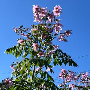元気な月曜日❗️ 真っ青な空に 満開のピンク色の 皇帝ダリア
